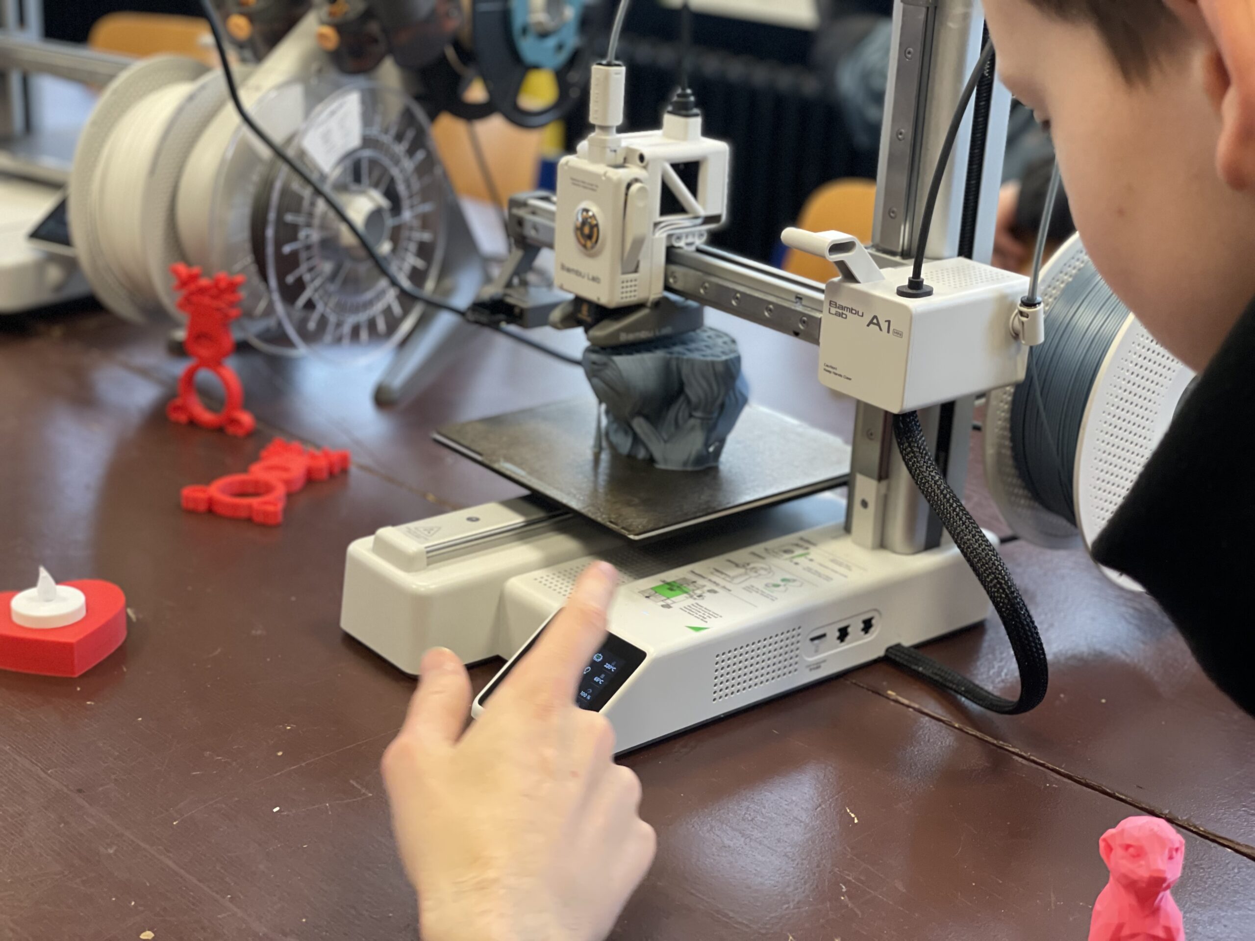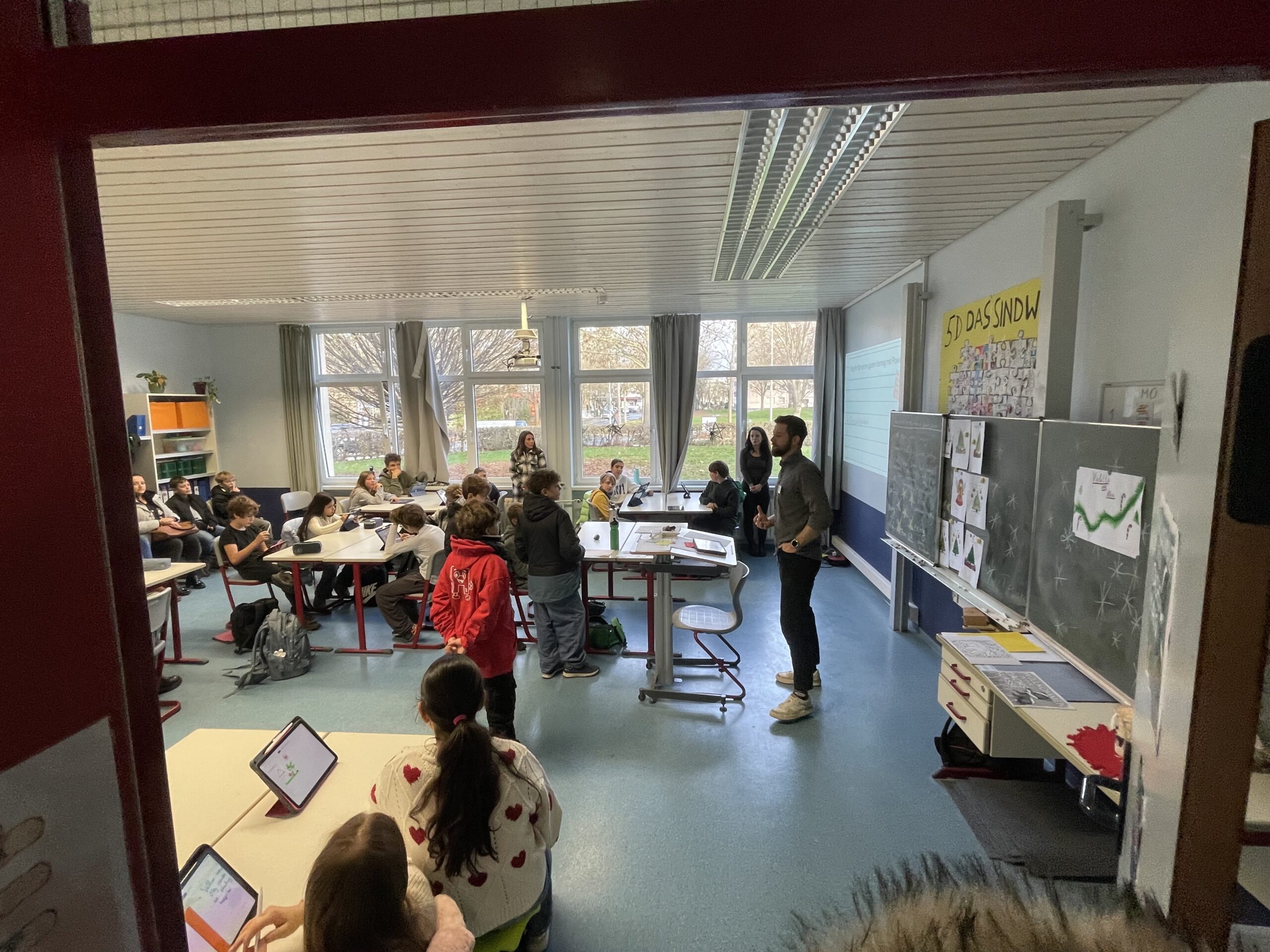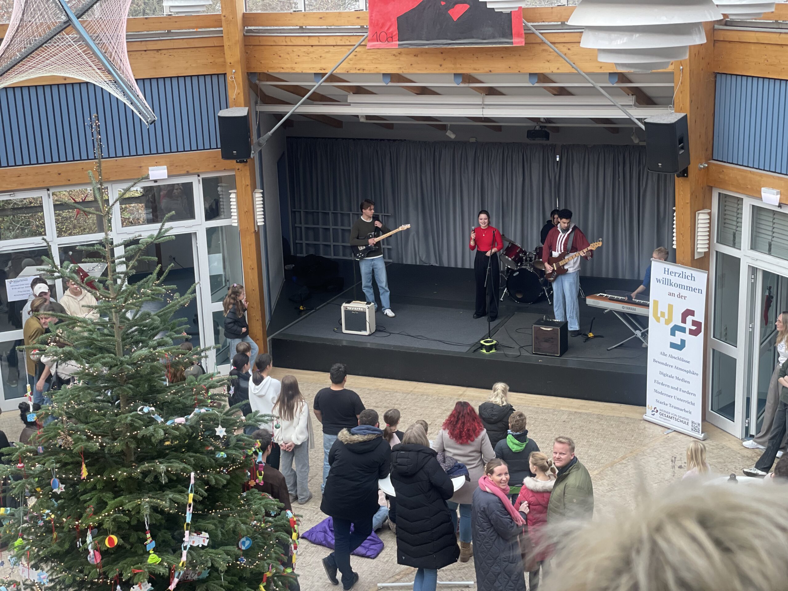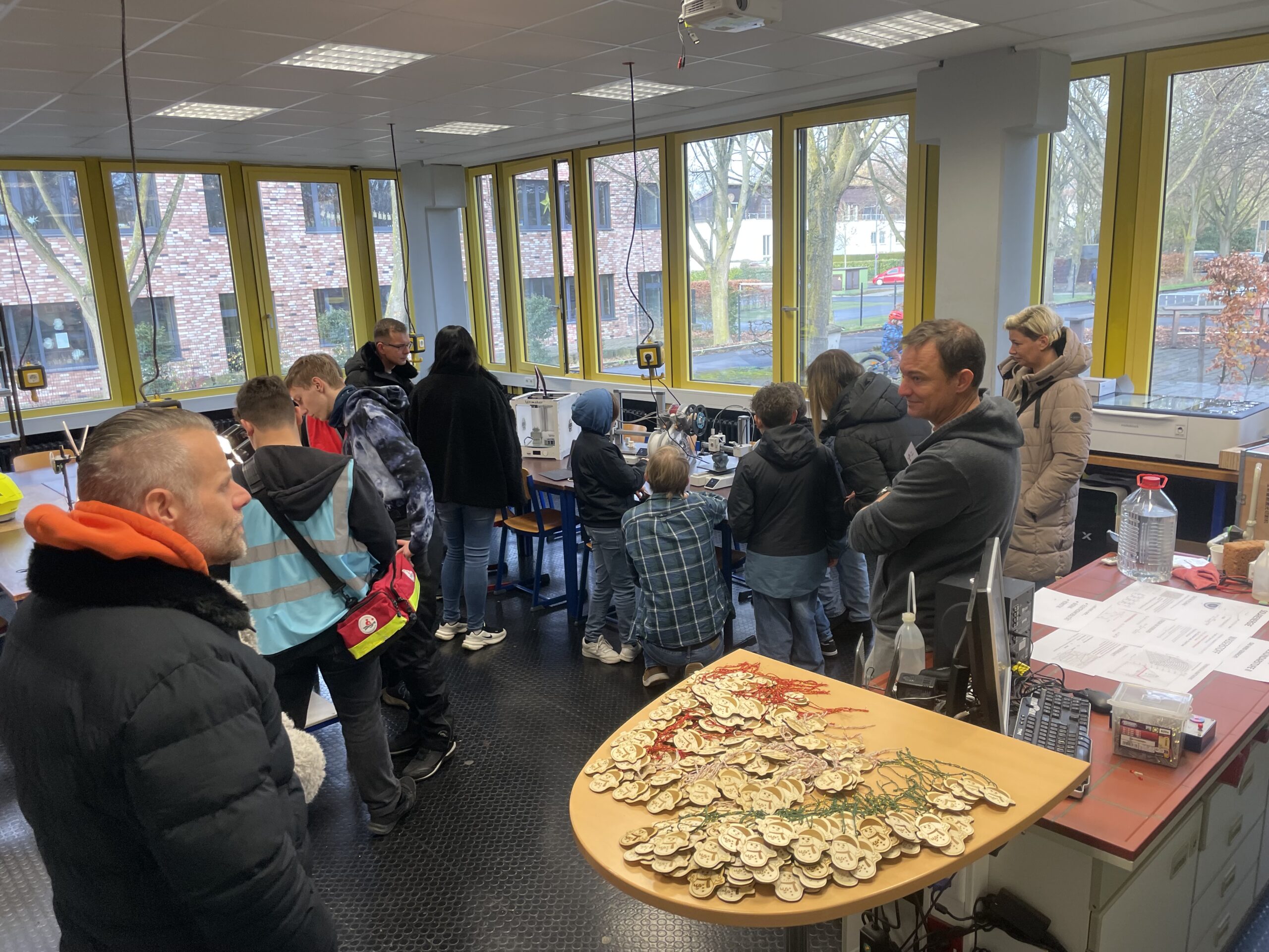 Alle 20 Minuten starteten Schulführungen, organisiert von Herrn Krohn sowie unterstützt durch weitere Lehrkräfte und Schüler der Klasse 10. So konnten Besucherinnen und Besucher das Gelände Schritt für Schritt kennenlernen und Unterrichtseinblicke erhalten. Beispielsweise konnten Gäste „Herr Werner von Siemens“, unseren digitalen Assistenten, kennenlernen, der zeigt, wie Künstliche Intelligenz an im Schulalltag unterstützen kann. Auch viele unserer Schulgemeinschaften waren vertreten: Schulsanitäter, SV, Streitschlichter und weitere Gruppen stellten ihre Arbeit vor und standen für Gespräche bereit.