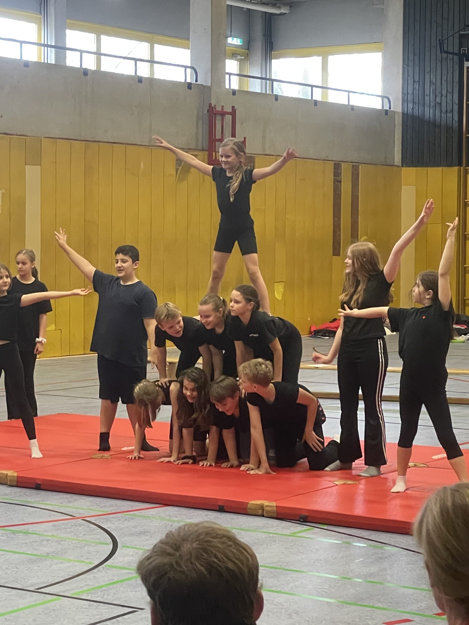 Musikalisch sorgte unsere Schulband mit Live-Musik den ganzen Vormittag über für gute Stimmung. In der Sporthalle präsentierten Schüller der 5. Klasse im Bereich Akrobatik ihr Können. Dabei ging es nicht nur um Körperbeherrschung, sondern auch um gegenseitiges Unterstützen, Vertrauen und gemeinsames Wachsen – Werte, die an unserer Schule großgeschrieben werden.