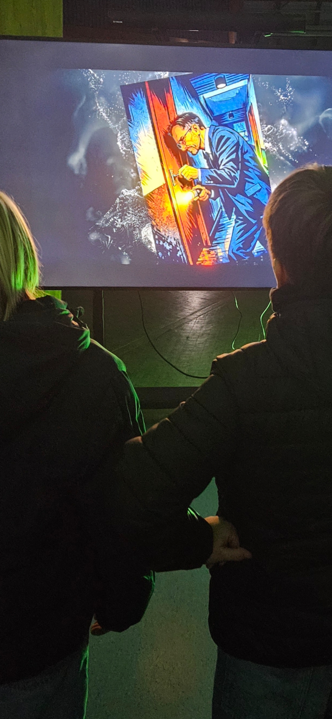Ihre Aufgabe war es, diesen Code zu knacken, indem sie sich in Kleingruppen begleitet von Schülerinnen und Schülern aus dem 10. Jahrgang auf Entdeckungstour durch das Gebäude machten.