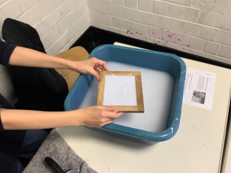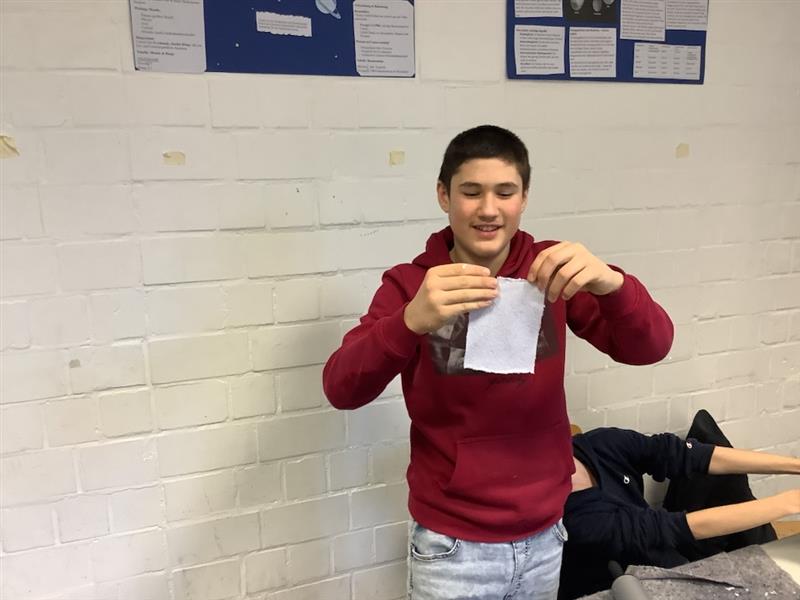 Nach dem Trocknen untersuchten die Schülerinnen und Schüler die Qualität des recycelten Papiers, zum Beispiel hinsichtlich Stabilität, Oberfläche und Aussehen. Das Projekt zeigte anschaulich, wie Recycling funktioniert und welchen Einfluss verschiedene Papiersorten auf das Ergebnis haben.