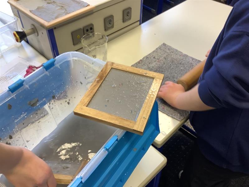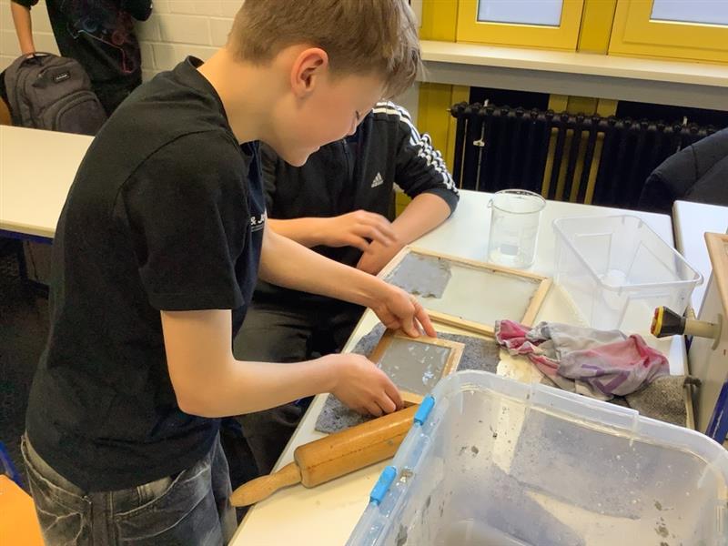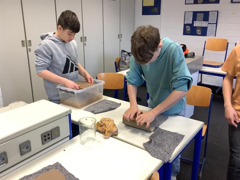 Im Wahlpflichtkurs „Naturwissenschaften Plus“ des 7. Jahrgangs beschäftigten sich die Schülerinnen und Schüler mit dem Thema Papierrecycling. Ziel des Projekts war es, aus verschiedenen Altpapieren selbst neues Papier herzustellen und dessen Eigenschaften zu untersuchen.